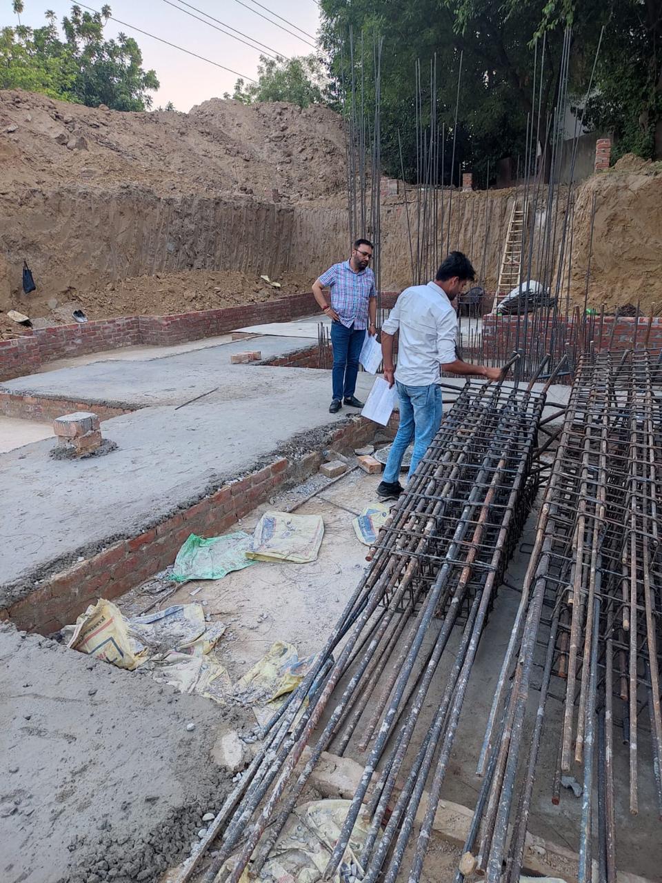 The construction of a 3-storey building with a basement, approved by state authorities, commenced with the foundation stone laid by then OSD to Chief Minister Mr. Jawahar Yadav on 18.06.2023. As of now, significant progress has been made, including excavation, basement work, reinforcement of retaining walls, and initial brickwork. The estimated cost for completion is approximately Rs. 3.5 to 4 crores.